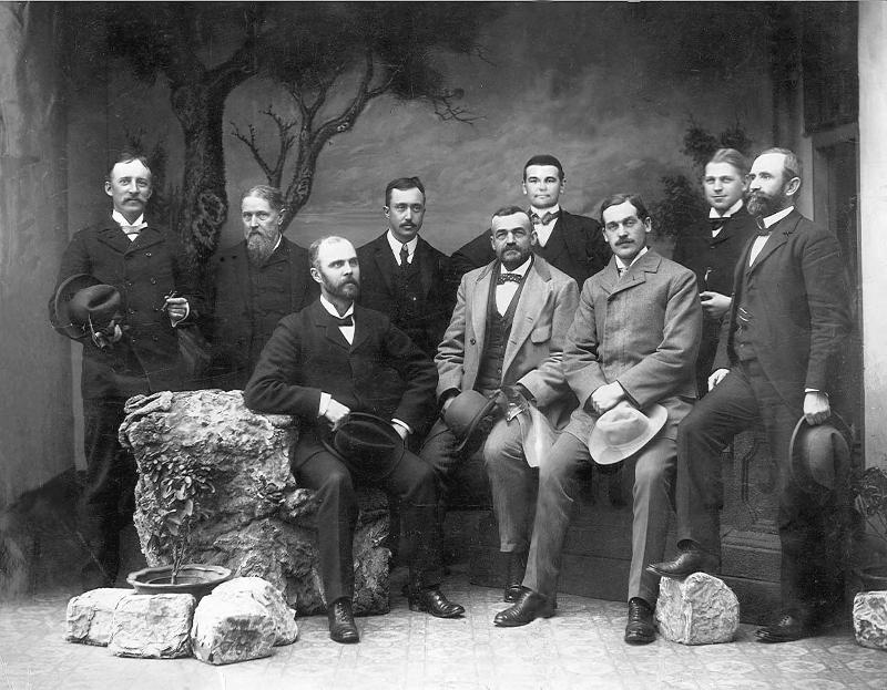 (with the white hat in his lap, front row, right of center) sitting in front of his young